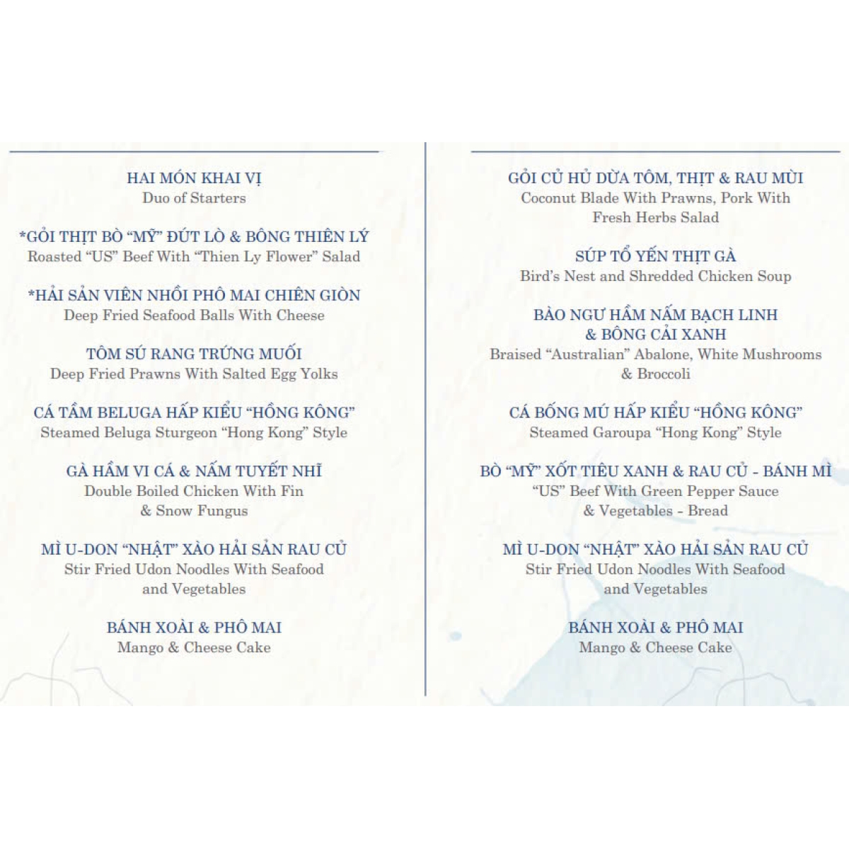 Menu Theo Bàn